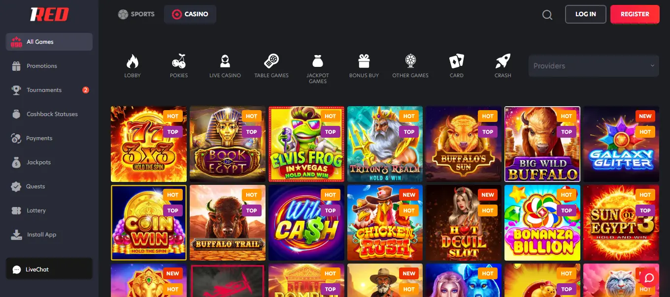 Analysis of the 1Red gaming hall allowed our team’s specialists to find over 5,000 gambling games from 55+ verified providers. Our experts decided to analyze popular casino games:
