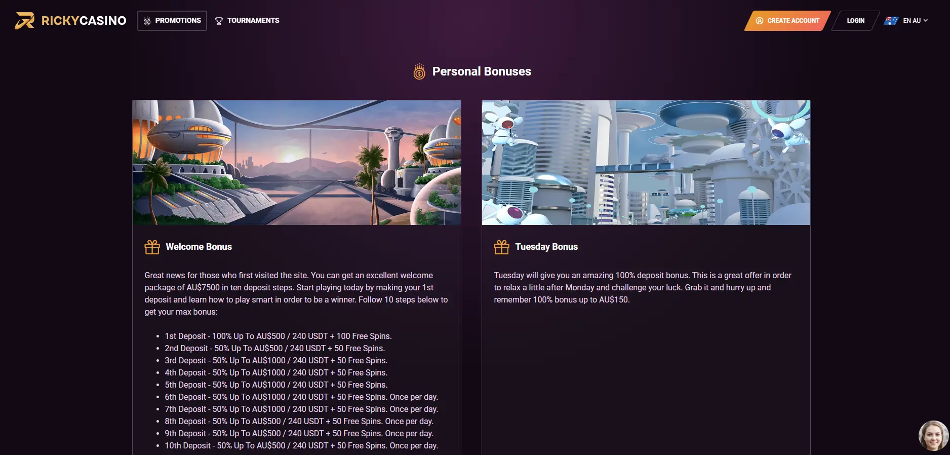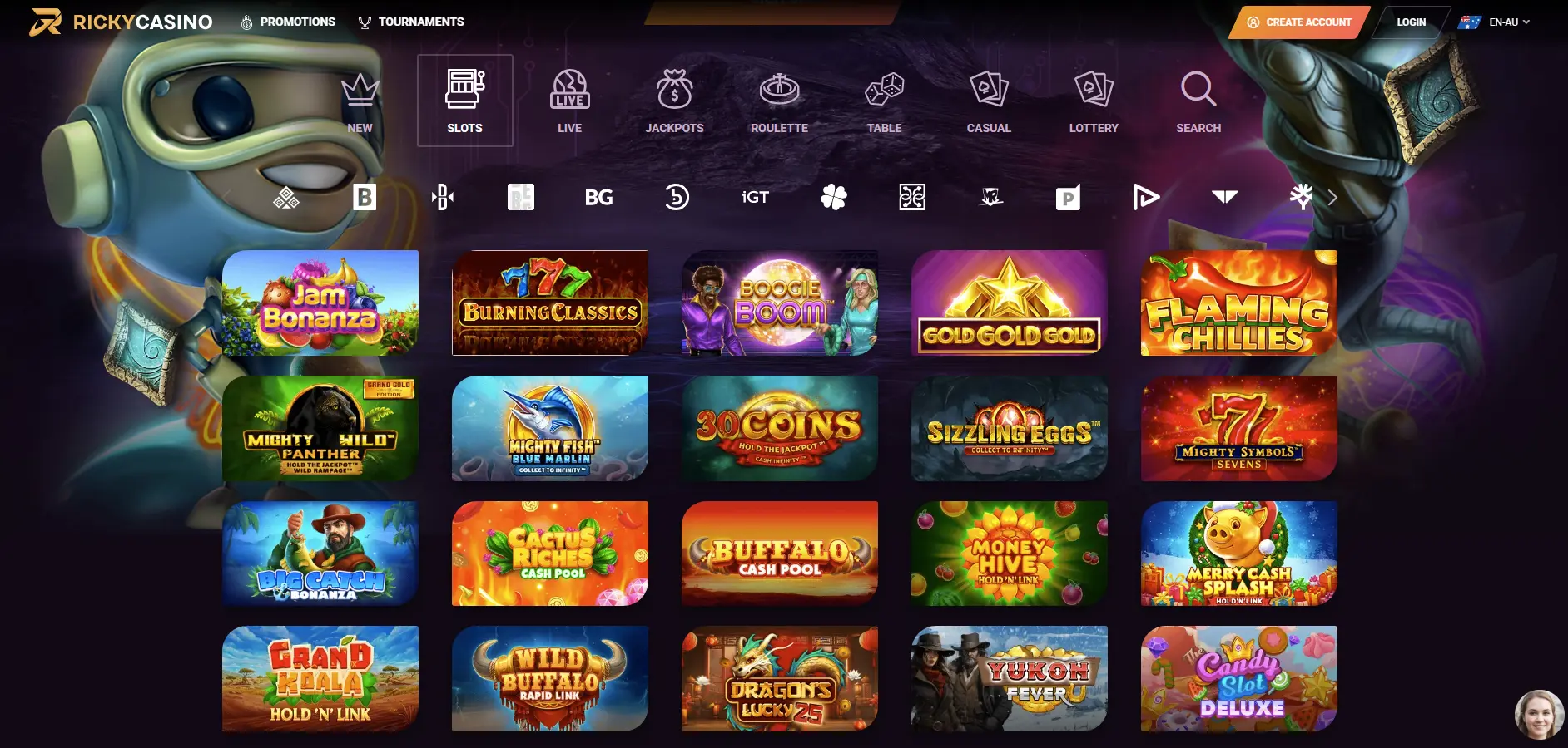 We inform users that Ricky has many positive reviews. Players praise a large collection of games and a powerful welcome package. The safe casino offers several incentives for guests and a range of payment systems. Therefore, we unreservedly urge this casino for AU players.