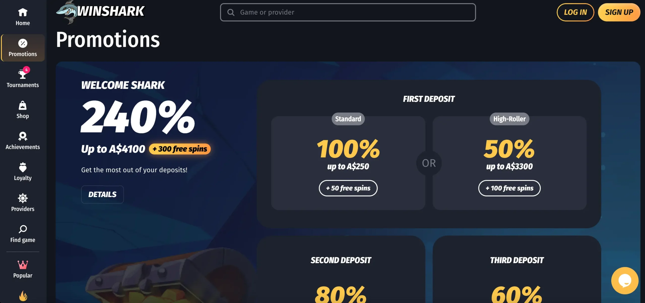 Winshark casino a young gaming establishment in 2024, hiding its parent company for some reason. Our experts had to look for the operator Hallstar Services Limited at the address on the map, holding a Curacao license. The recently opened site is now gaining popularity among Australian players, issuing a welcome bonus of 4,100 AUD + 300 FS to each newcomer to the platform. In addition, future regulars will not be left without a premium because the administration offers to reload bonuses and cashback with a well-thought-out loyalty program.